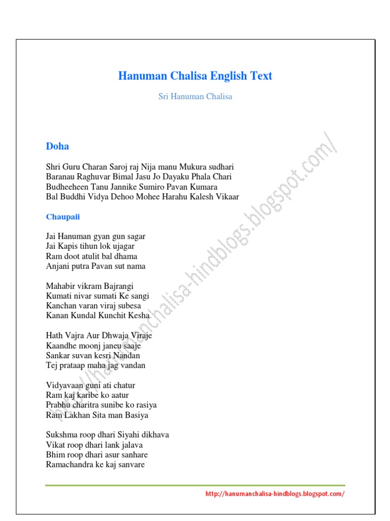 Hanuman Chalisa Pdf In English - The word chalisa, meaning the number forty in hindi, is added as a suffix to it as there are.